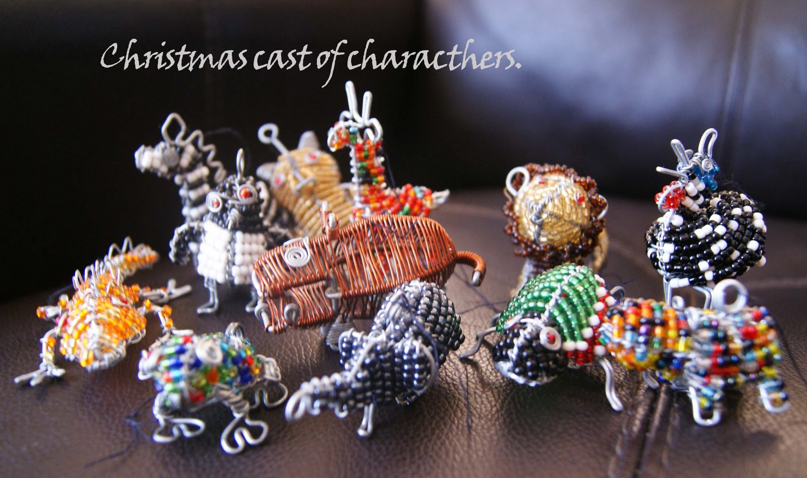 Last night we put up our Christmas tree! We decided when we moved here in May that we would buy these little beaded creatures to decorate the tree with. It was kind of sad to not have any of our ornaments here, they are still at the Echols’ in Colorado. These animals are made by local Namibians, and they are sold at a craft market in town. Here they are: