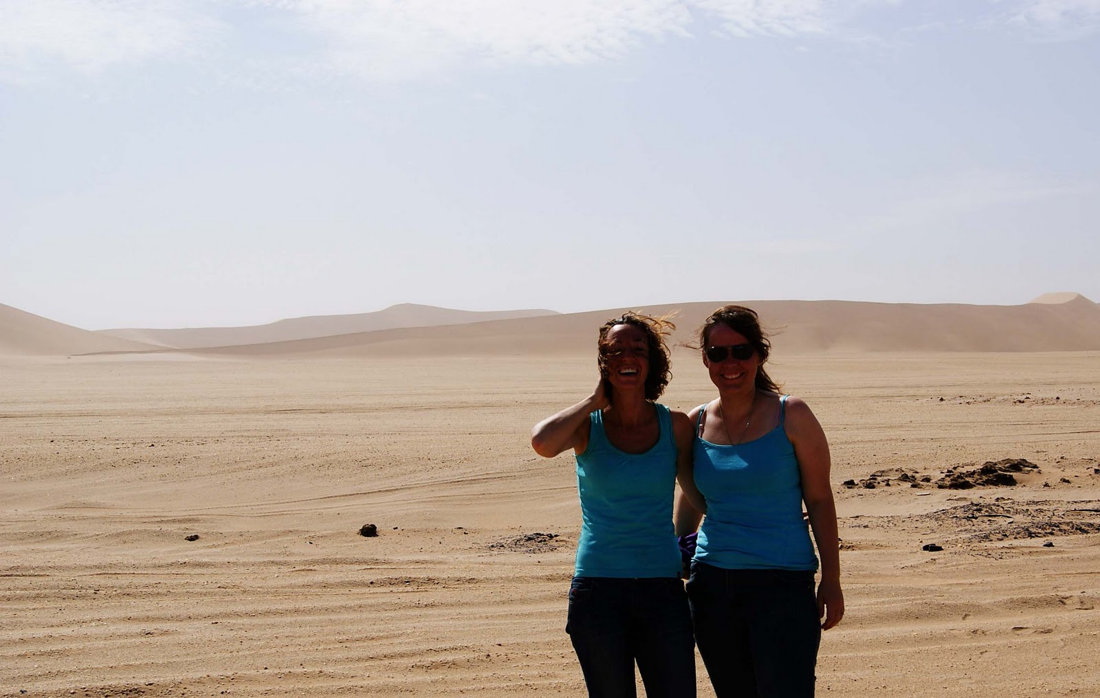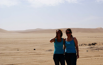 Marye and I keep showing up in the same outfits. We keep joking that we pre-plan to dress the same, but we don’t. Marye is a great friend, and an absolute encouragement to us out here. She also has a fantastic dress sense:) The first picture is of us standing in the Namib desert, right after we climbed to the top of Dune 7. The second is on the deck on the outside of the beach house that we were staying at.
