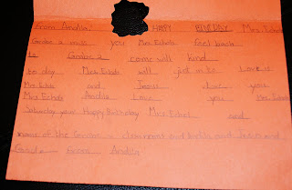 I also had my birthday this past weekend, it was a lovely day. I spent the morning shopping with Marye and later in the afternoon some people cam over for cake. It was very low key, I am still trying to get over the flu. But it was a fun day. Adam had all the kids in grade 2 make some birthday cards for me, it was great! I will post some pictures of my favorites 🙂