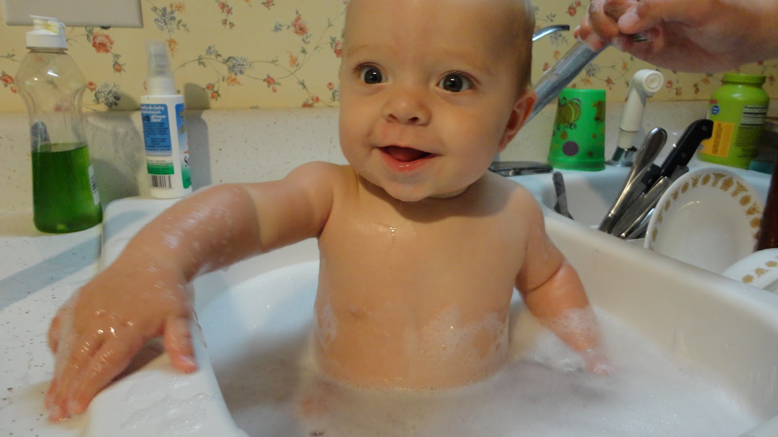 He is just a funny, happy, sociable little guy. He loves to talk with his hands, giggles a lot, and has learned how to pour water on David during bath time.